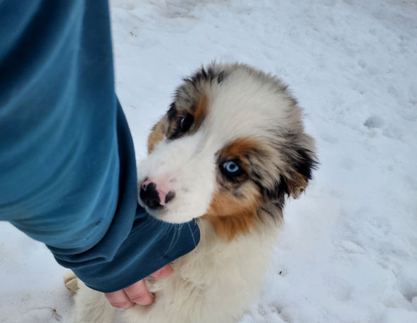 Misty is our quiet girl with a gentle heart. She is super sweet, very playful, adventurous, and attentive with me and the kiddos, likes to learn, and is smart, but she may take a minute to warm up to new people.